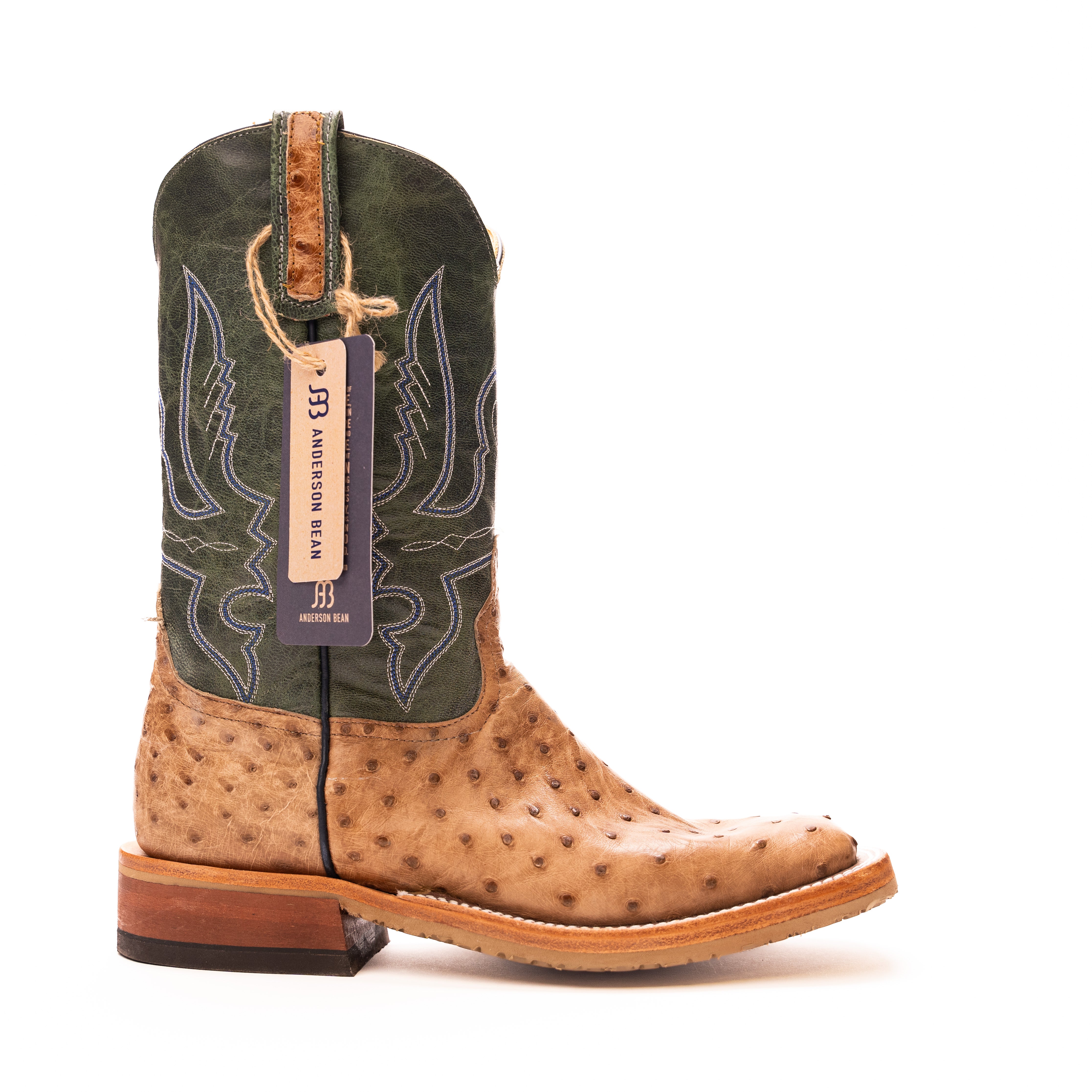 Anderson Bean Tan Full Quill Ostrich with 13" Green Tops