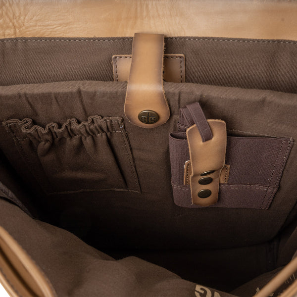 - Under flap: 2 zip closure pockets and 1 velcro slip pocket