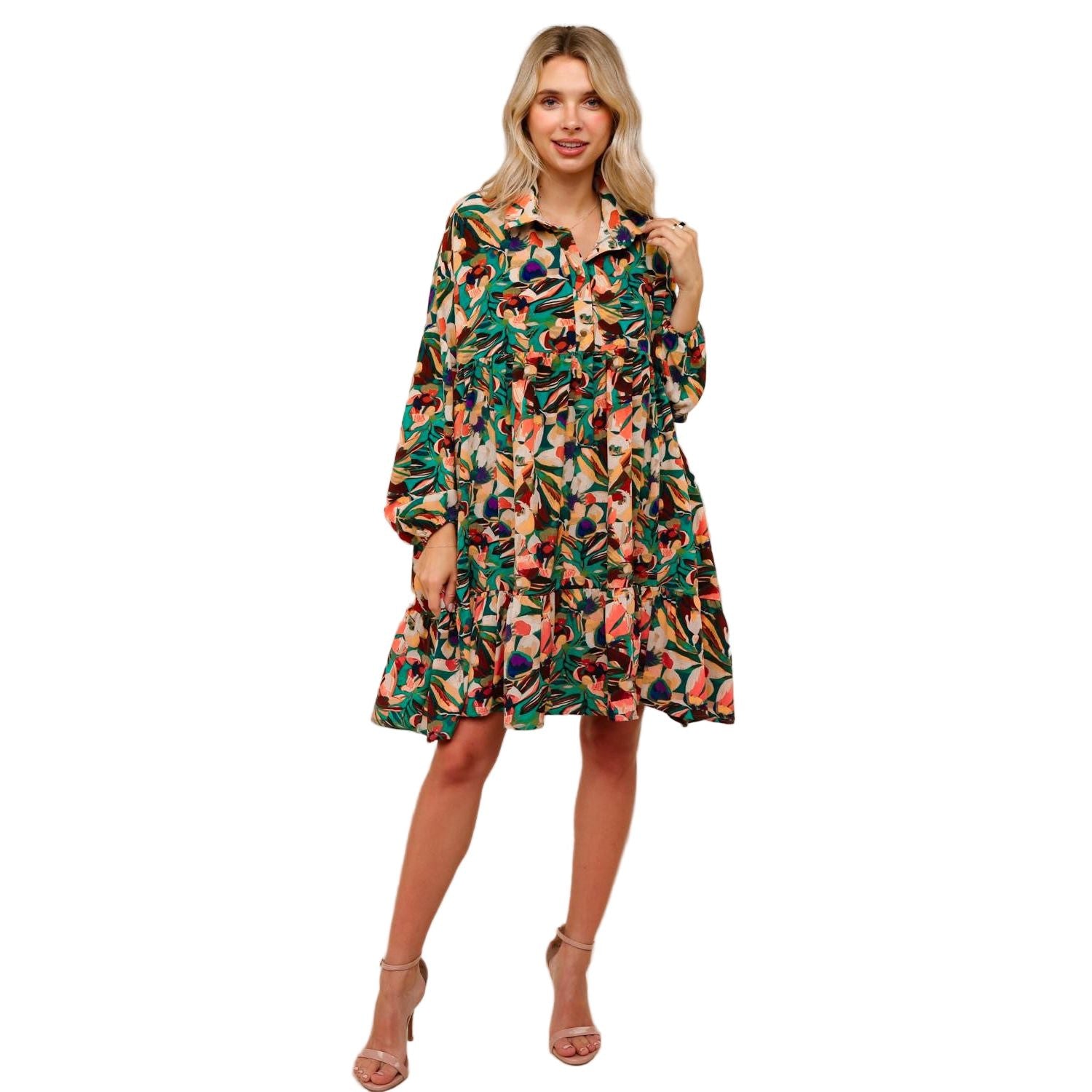 Women's Collared Floral Dress with Ruffle HD7160A