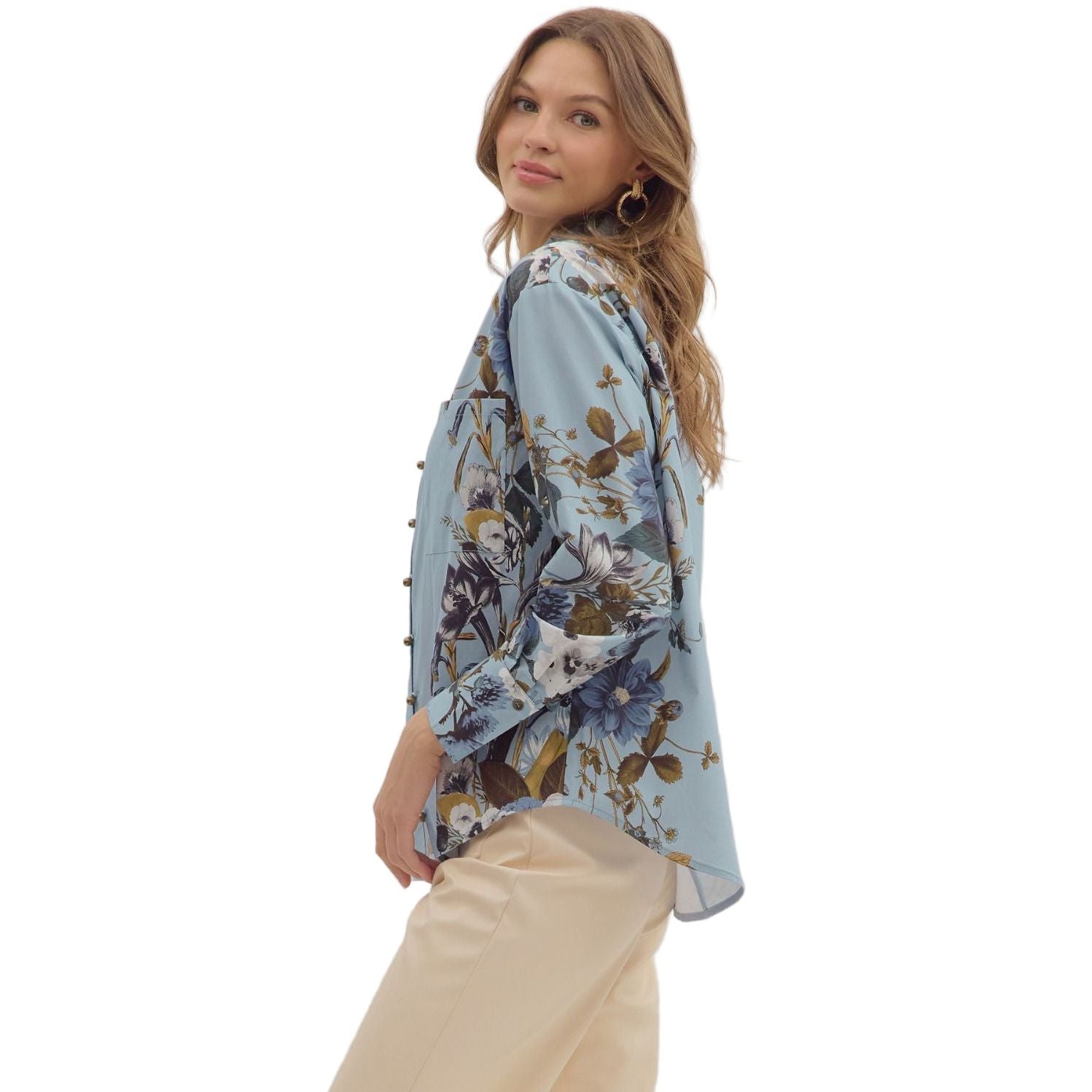 Women's Entro Long Sleeve Floral Chambray Shirt T28313