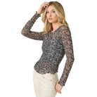 Lettuce Hem Mesh Print Top Fitted V-neckline Ruched front, back, and sides -95% Polyester, 5% Spandex -Model wears: S / Model height: 5' 9"