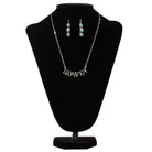 Beautifully paired Silver Strike ladies earrings and necklace set by M&F Western Products. Southwest engraved Howdy wording with inlayed turquoise stones. Dangle earrings with 3 turquoise stones.