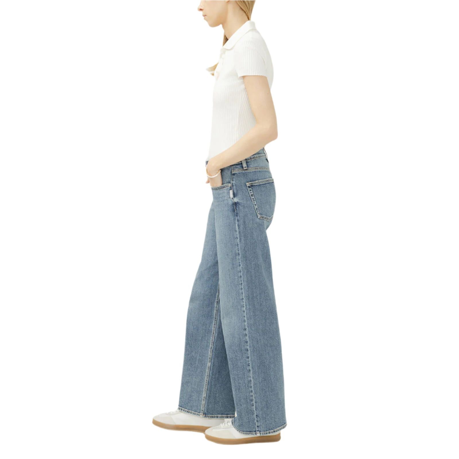 - Wide leg jeans in a light-medium indigo wash