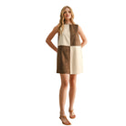 Women's Suede Color Contrasted Shift Dress D5233