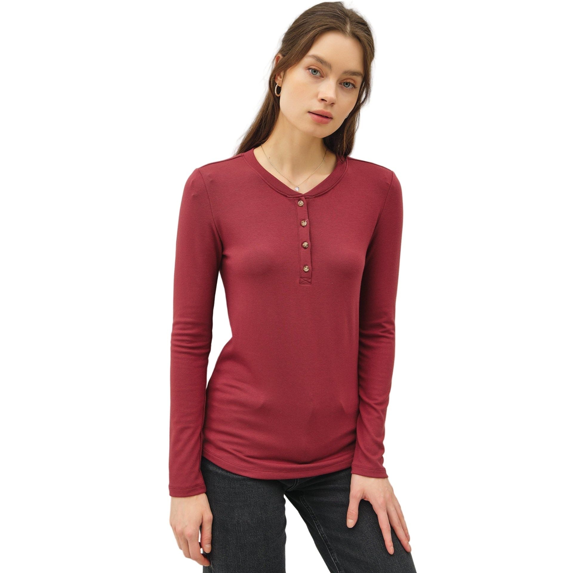 Women's Ultra Soft Basic Long Sleeve Henley Top 19706
