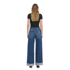 Super high rise cuffed baggy wide leg jeans Comfort stretch denim, Super high rise waist, Lightly distressed detail,