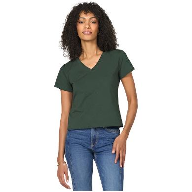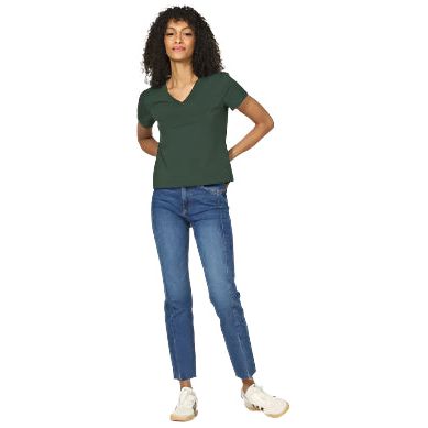 Women's Another Love Amaya Dark Green V-neck T-shirt VCKN1762EVG