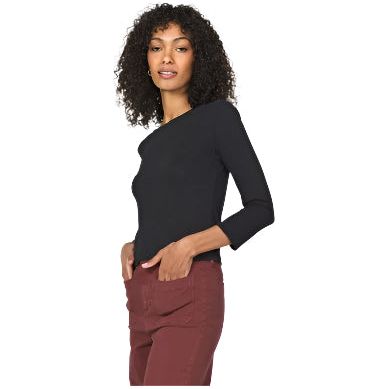 Long sleeve crew neck top with shirring detail 60% cotton, 40% rayon
