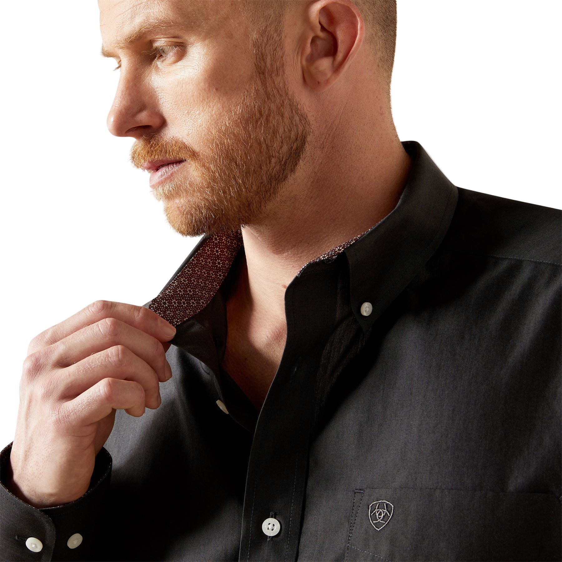 Versatile Ariat Mens Print Shirt. Performance stretch flexes as you move; classic tailoring keeps you looking sharp. Durable enough for hard work, presentable enough for dinner out, this shirt will keep you comfortable wherever the day takes you. Ariat adds style and durability.