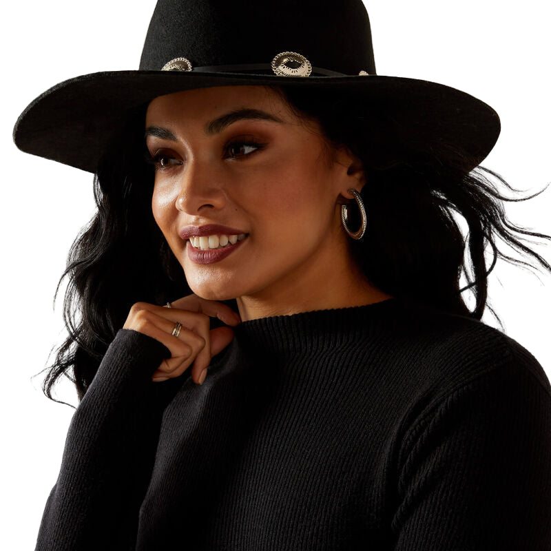 The LBD—all grown up. Crafted from soft jersey knit, this sweater dress is comfortable enough for every day yet feels really chic, thanks to a high neckline and sophisticated long sleeves. Tassels at the hem add Western flair.