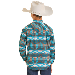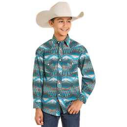 Boy's Rock and Roll Aztec Print Long Sleeve Snap BBN2S07152