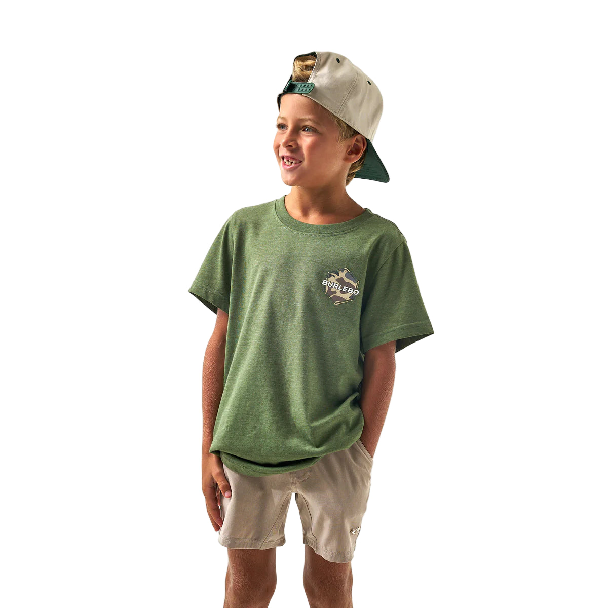 Boy's Burlebo Short Sleeve Tee Rad Dude Deer Camo Heather Olive Y-SST-DUDDC-HO
