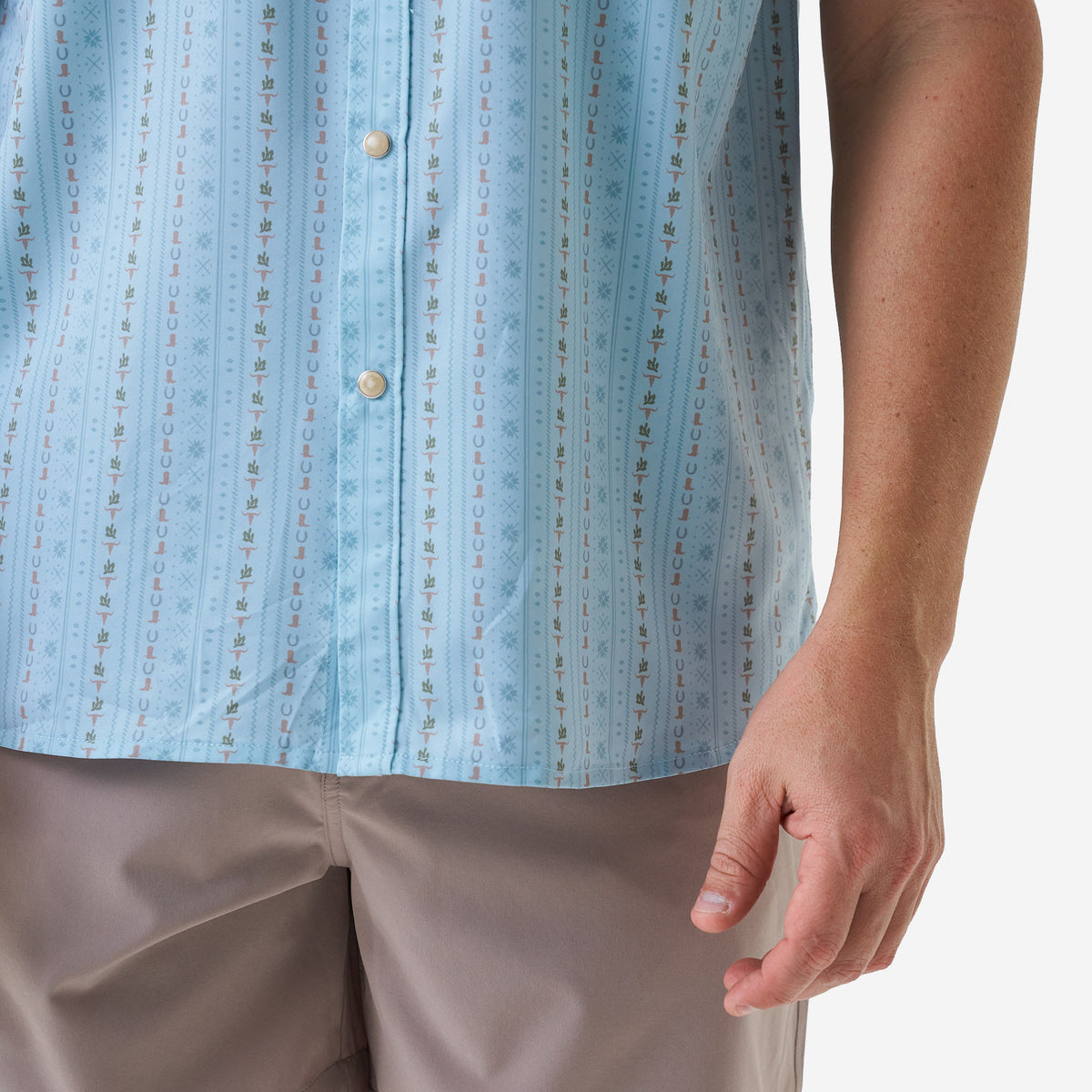 The Performance Western Shirt, crafted for the modern individual who values both style and functionality. Made from a premium blend of 90% Polyester and 10% Spandex, this button-up offers lightweight performance and superior comfort. Constructed from a lightweight performance fabric, designed to keep you cool and comfortable all day long. The breathable, quick-dry, and moisture-wicking properties ensure you stay dry and fresh, while the four-way stretch fabric provides maximum flexibility and mobility.