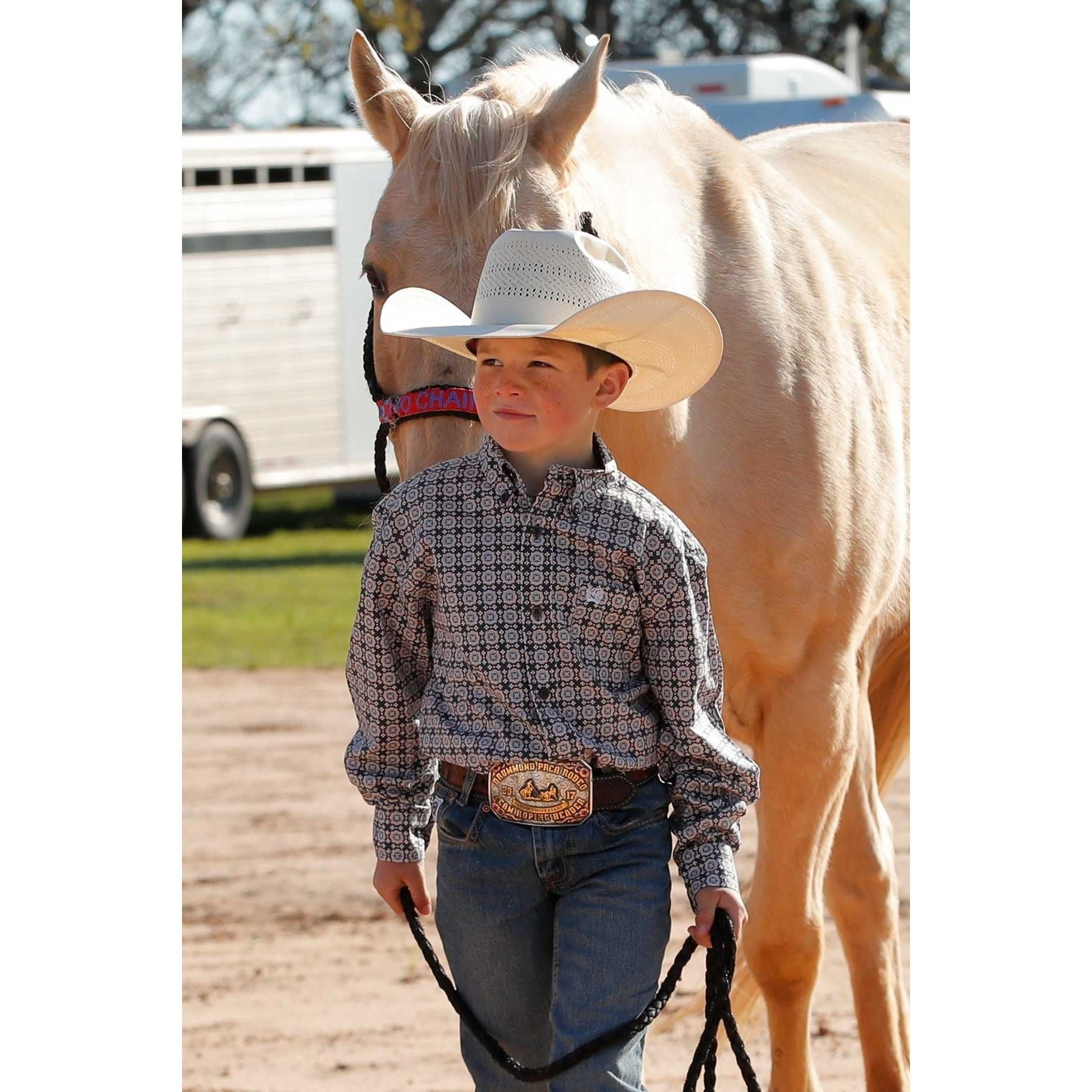 Boy's Cinch Gray Geometric Print Western Shirt MTW7060372