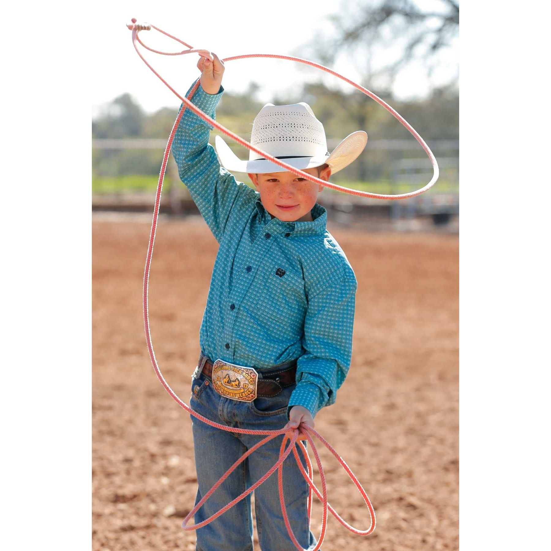 Dress your up-and-coming cowboy in a classic cotton plain weave like this handsome blue paisley shirt crafted for toddlers and infants. Design features include an open left front pocket, embroidered CINCH logo, and blue buttons.