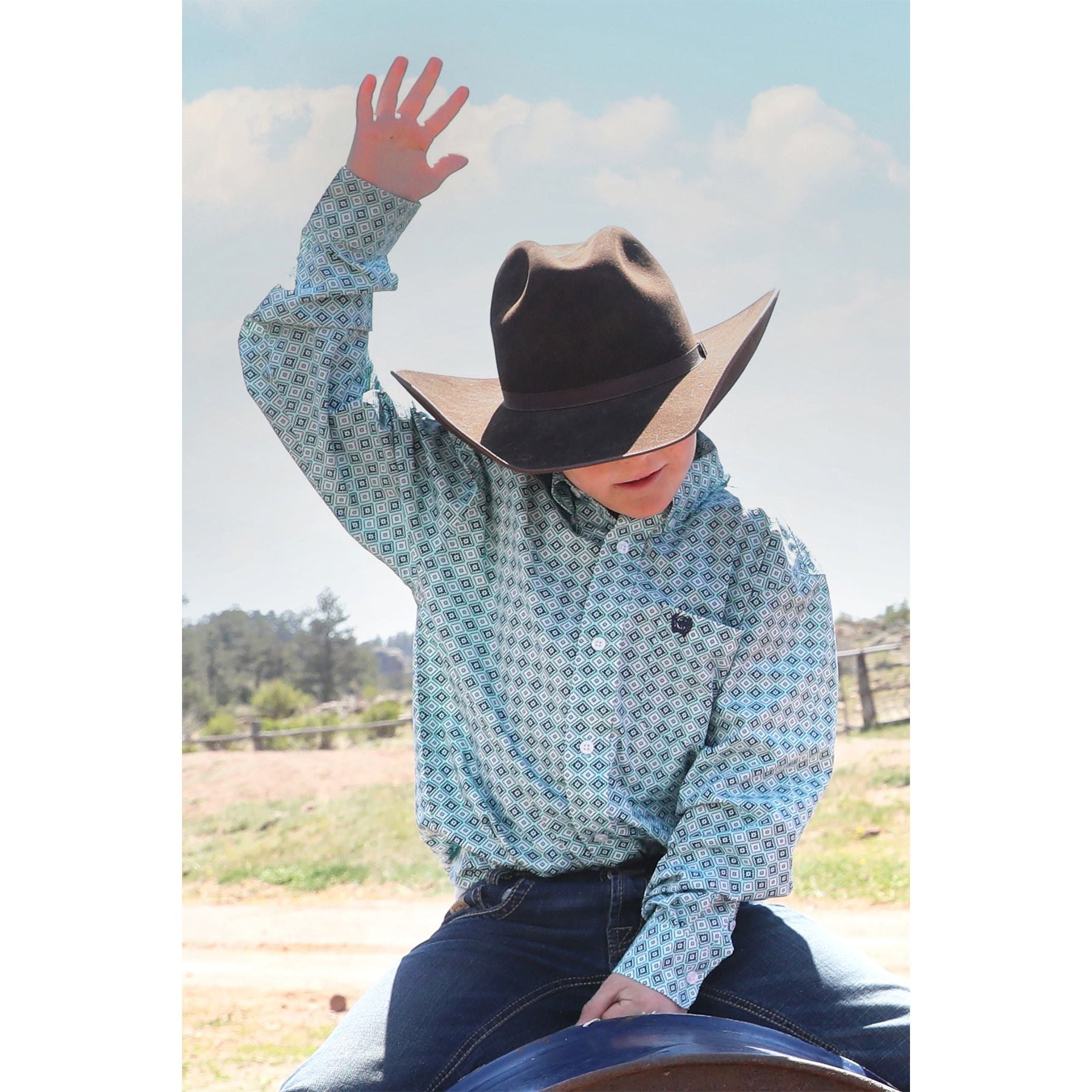 Cinch Boys' Long Sleeve Button down Turquoise Print Western Shirt.