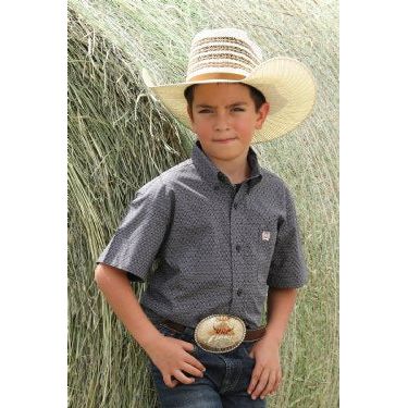 Boy's Cinch Short Sleeve Geometric Button-Down Shirt - Gray MTW7140035