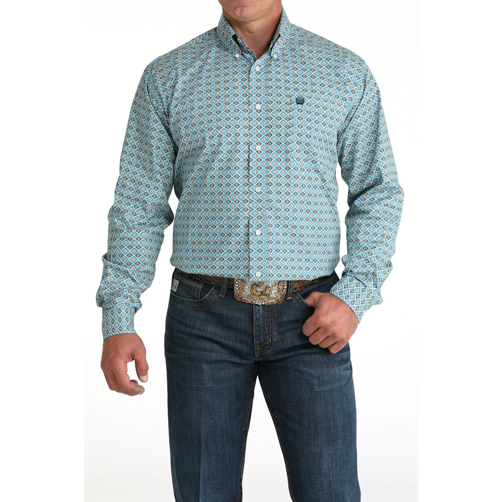Men's Cinch Blue Print Long SLeeve Button Down Shirt MTW1105955