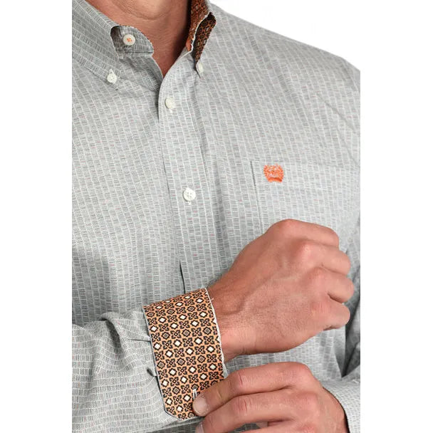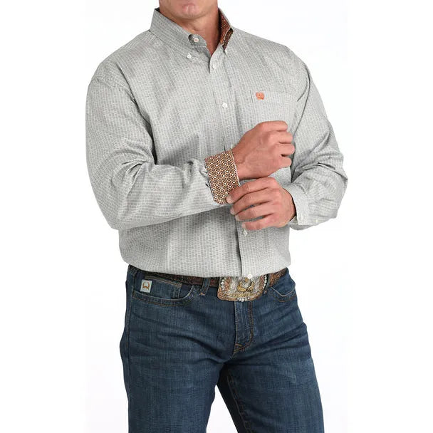 Men's Cinch Cream Geometric Print Button Up Shirt MTW1105961