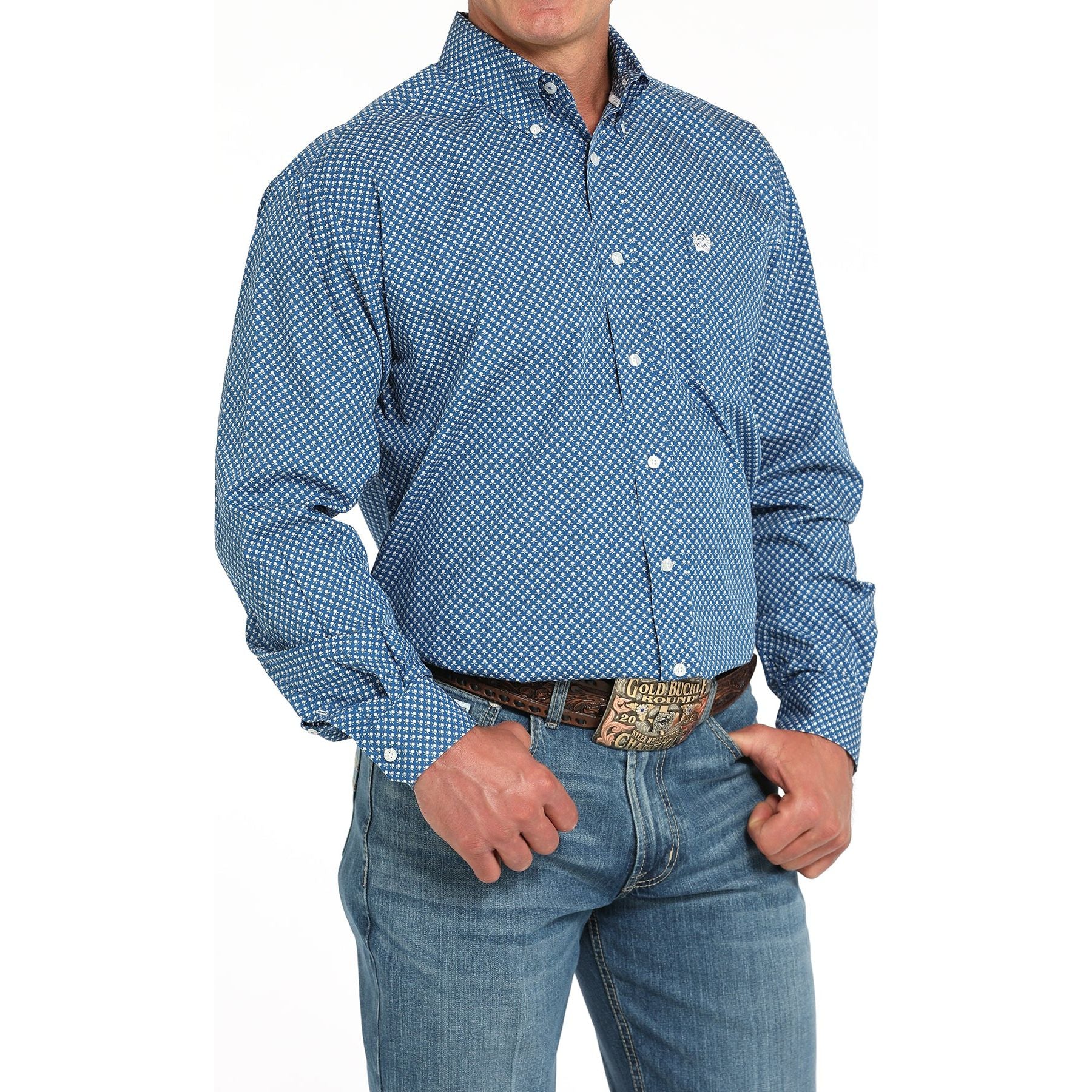 Men's Cinch Geo Print Royal Blue Long Sleeve Button Up MTW1105928