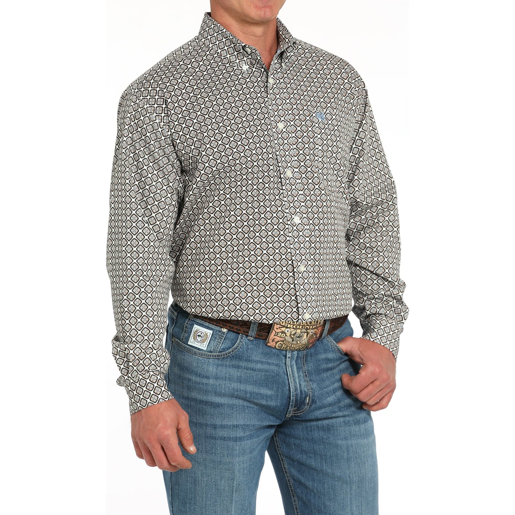 Men's Cinch Scalloped Diamond Long Sleeve Button Down Shirt MTW1105950-CRE