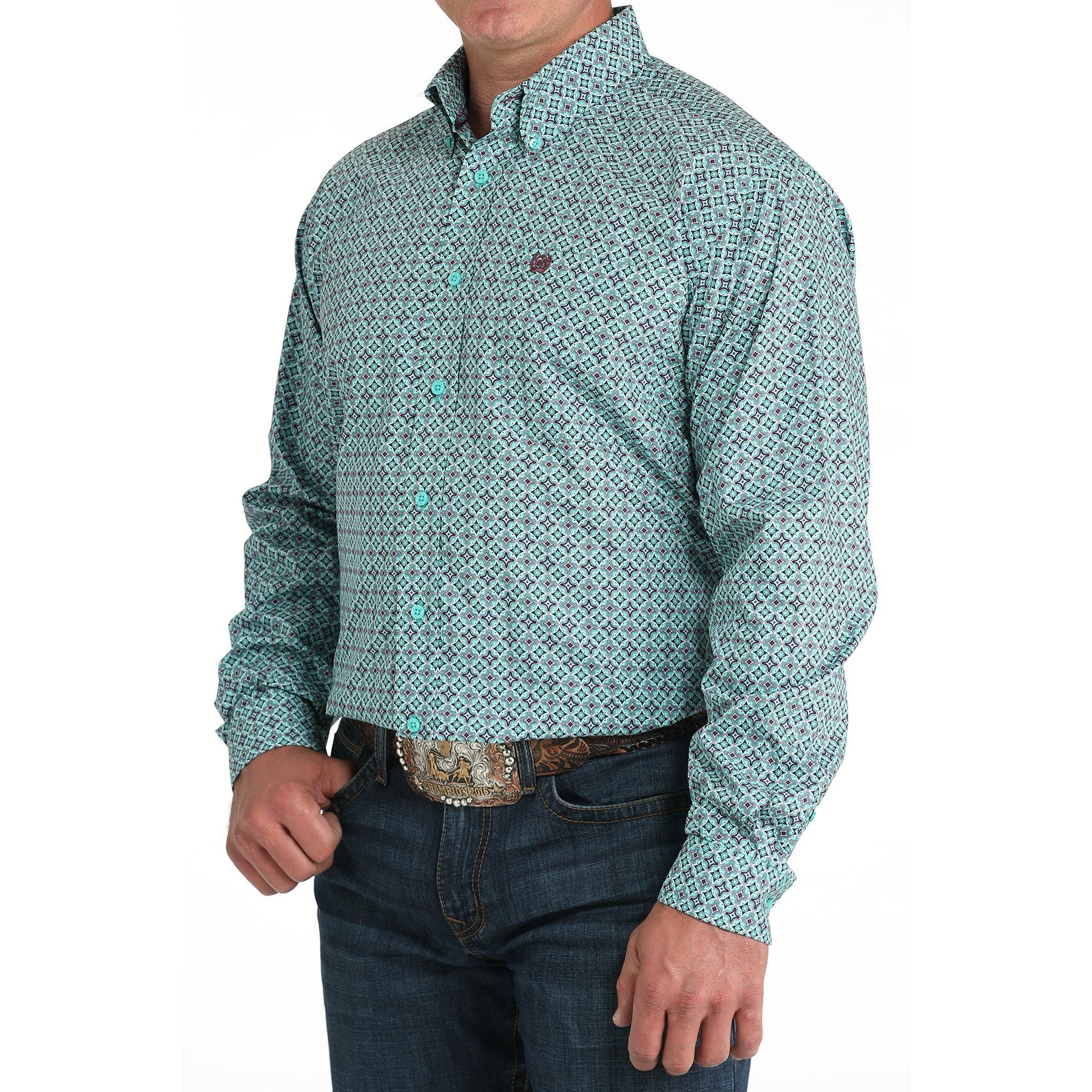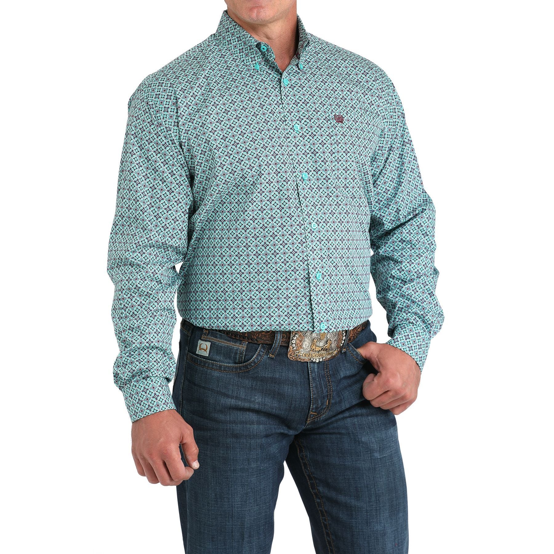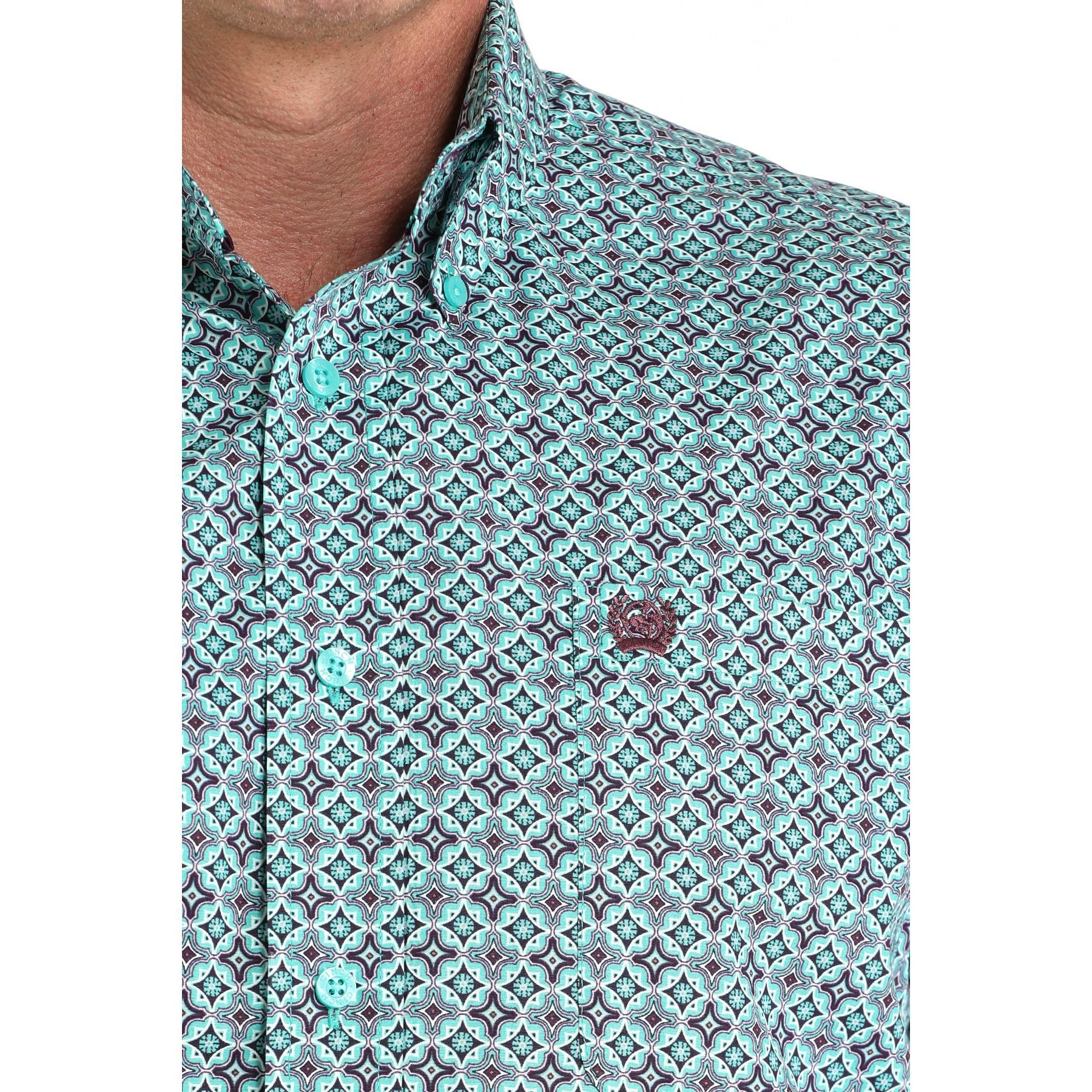 Men's Cinch Turquoise Tile Print Button Down Shirt MTW1105971