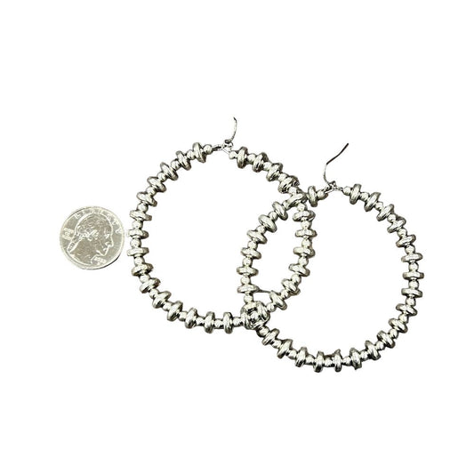 Women's Isac 2.5" Long Handmade Silver Navajo Bead Hoop Earrings 725524