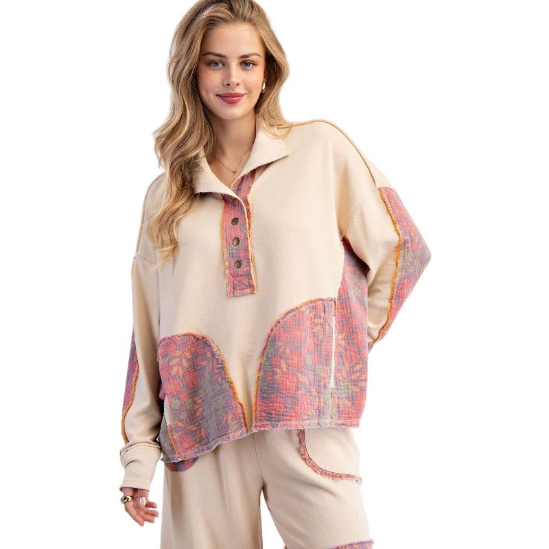 Women's Easel Thermal Mix Washed Terry Pullover ET71670
