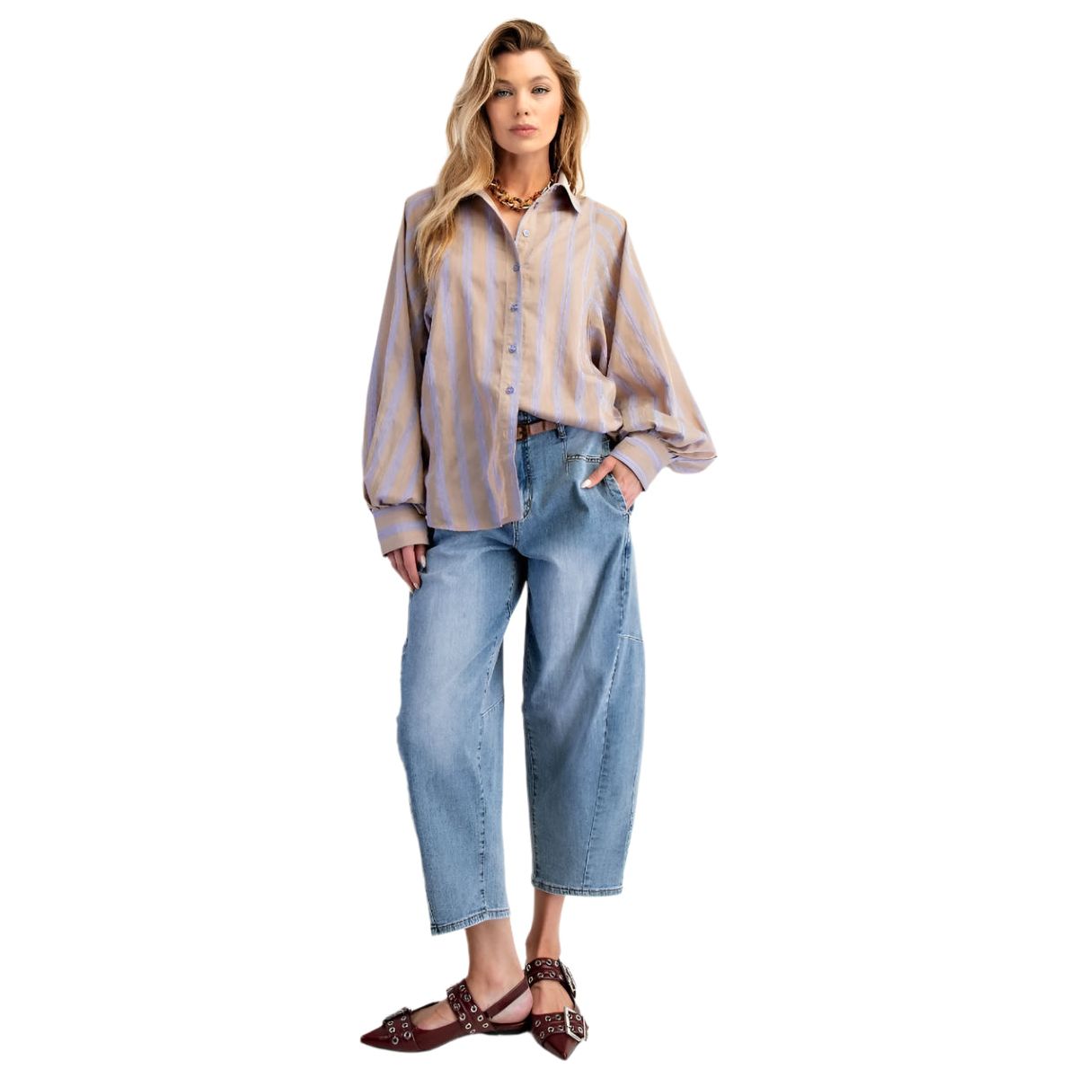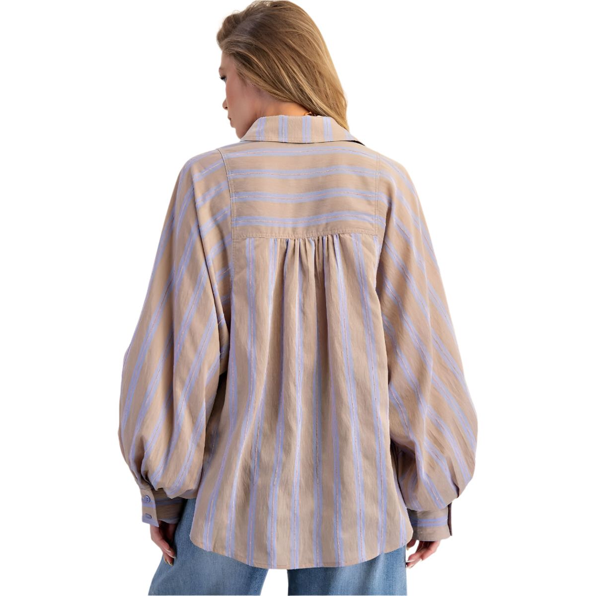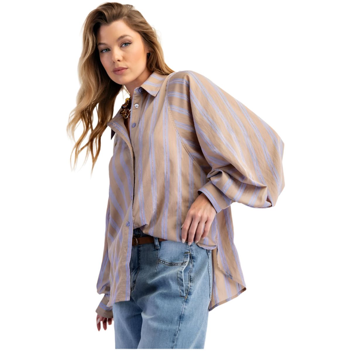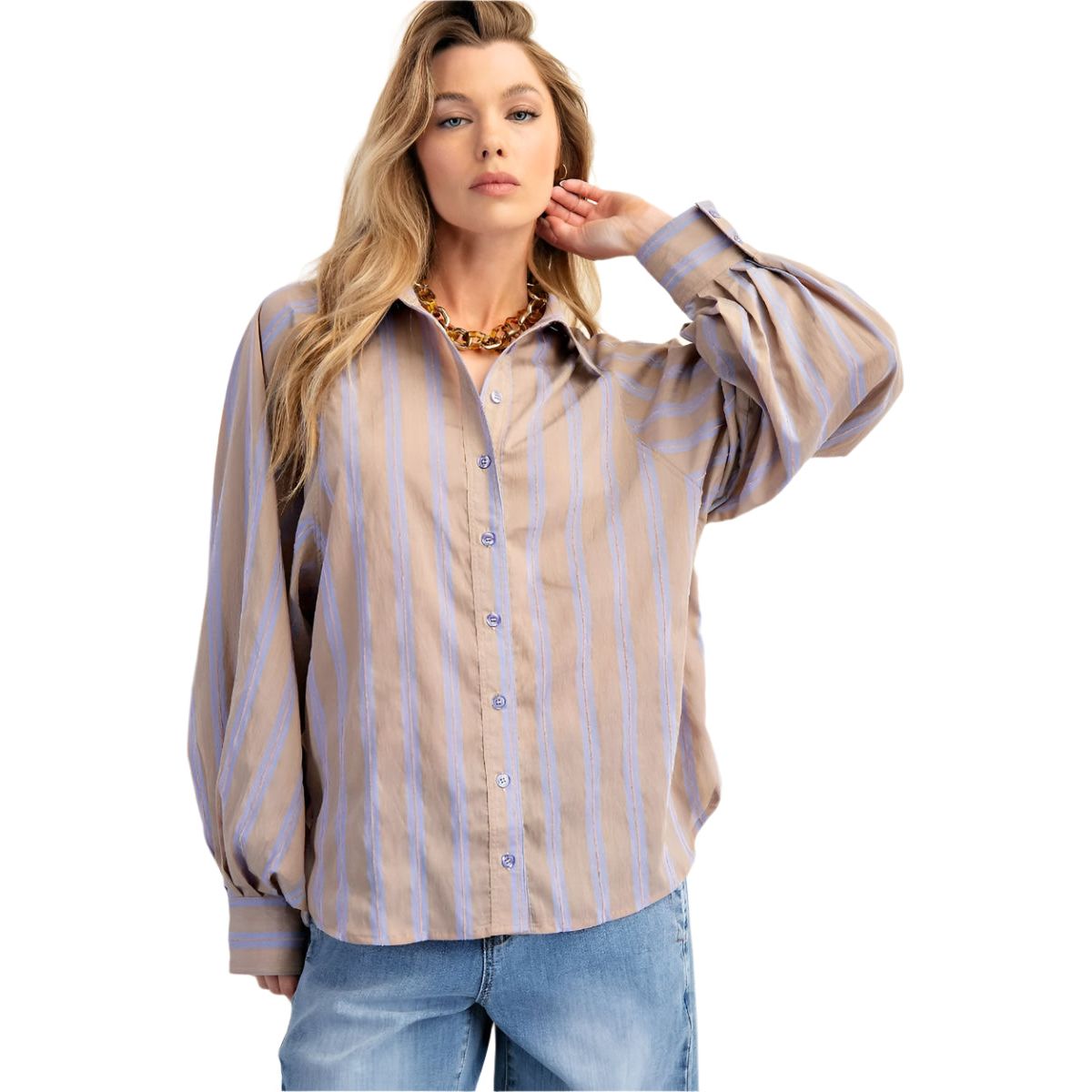Women's Easel Long Balloon Sleeve Button Up Shirt ET71734
