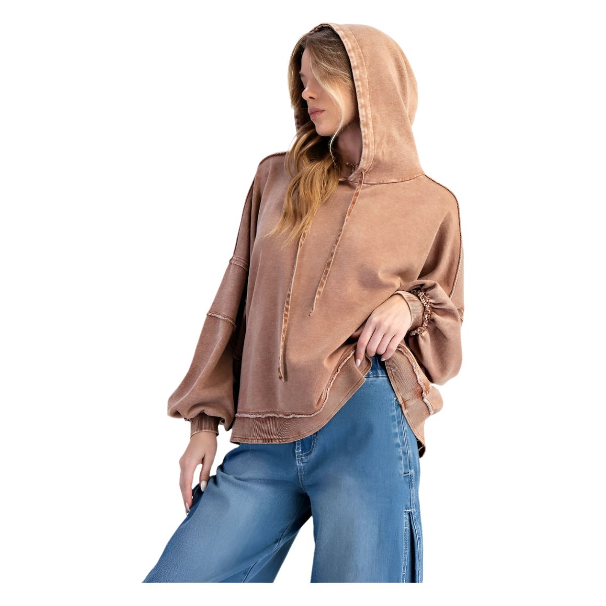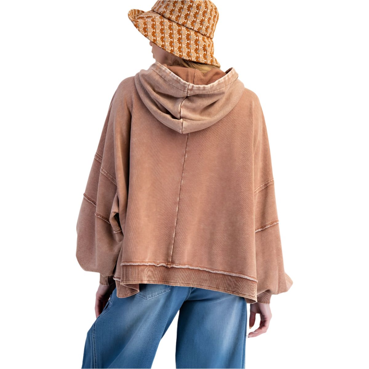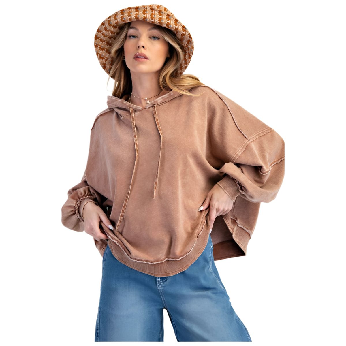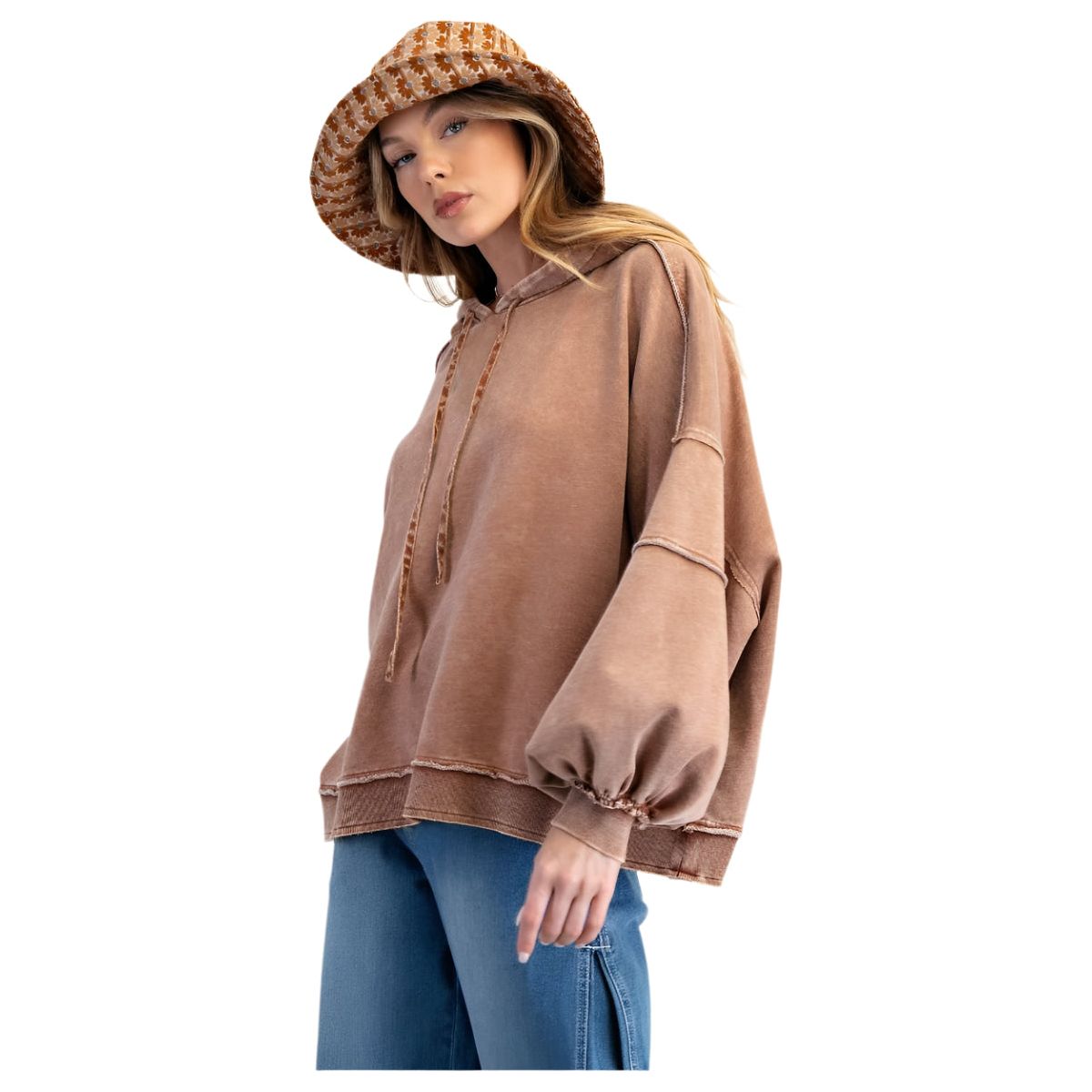 Women's Easel Loose Fit Brown Hoodie ET26263