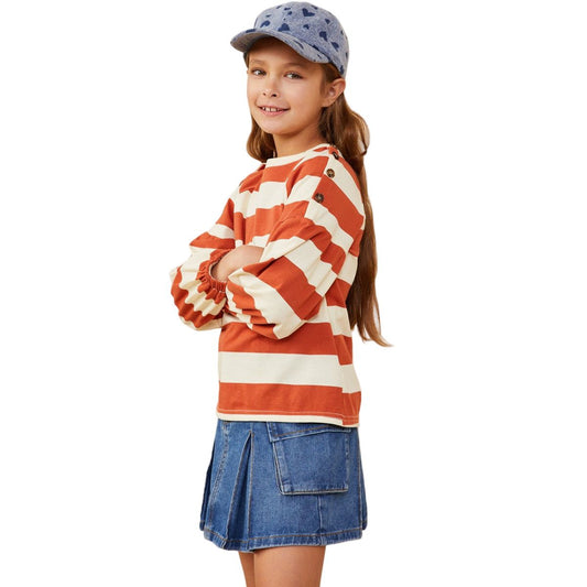 Girls Shoulder Button Detail Puff Sleeve Knit Top GY8835