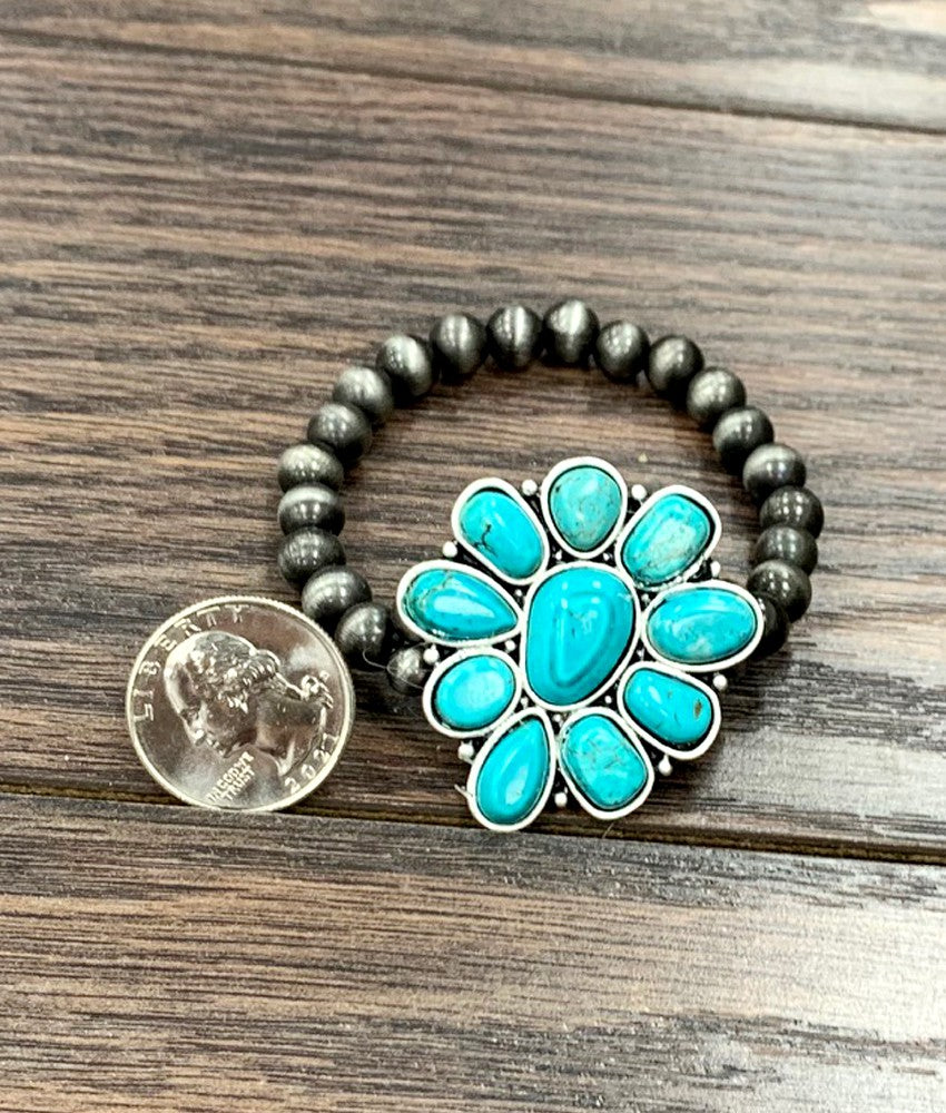 6mm Navajo Pearl Stretch Bracelet, Natural Turquoise * Natural stone may vary in size, color or shape * 6mm navajo pearl * 1.8" long turquoise * 30 grams weight * Alloy metal * Antique silver plate * Nickel, Lead & Chrome free