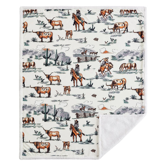 HiEnd Ranchlife Western Toile Campfire Sherpa Throw Blanket CF2138TH-OS-DF