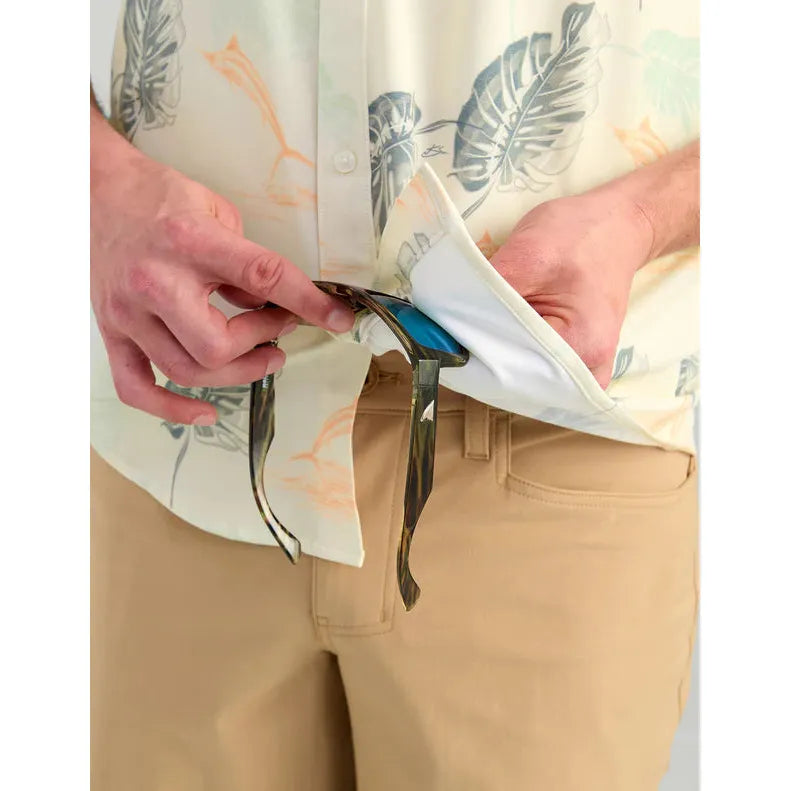 The Huk KC Scott©️ Kona Button-Down Shirt is a versatile button-down designed for day-long use. Crafted of lightweight, breathable, quick-drying fabric with two-way stretch and a built-in microfiber sunglasses wipe, the Kona is optimized for comfort and convenience both on and off the water. Its design enables easy transition from boat to bar for an enjoyable day in the sun.