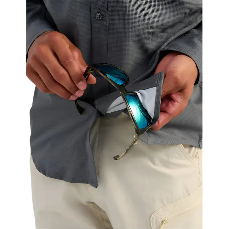 The Huk Tide Point Long Sleeve provides superior performance, designed for comfort and durability both on and off the water. This product offers 30+ UPF protection, mechanical stretch and an updated ripstop quick-drying fabric. Unlike other fishing-first button downs the Tide Point looks sharp enough you dont' have to make excuses for wearing it around town. The laser perforated back panel delivers gold standard breathability without bulky flaps and extra material and the hidden sunglasses wipe is just as clutch in the truck as on a boat.