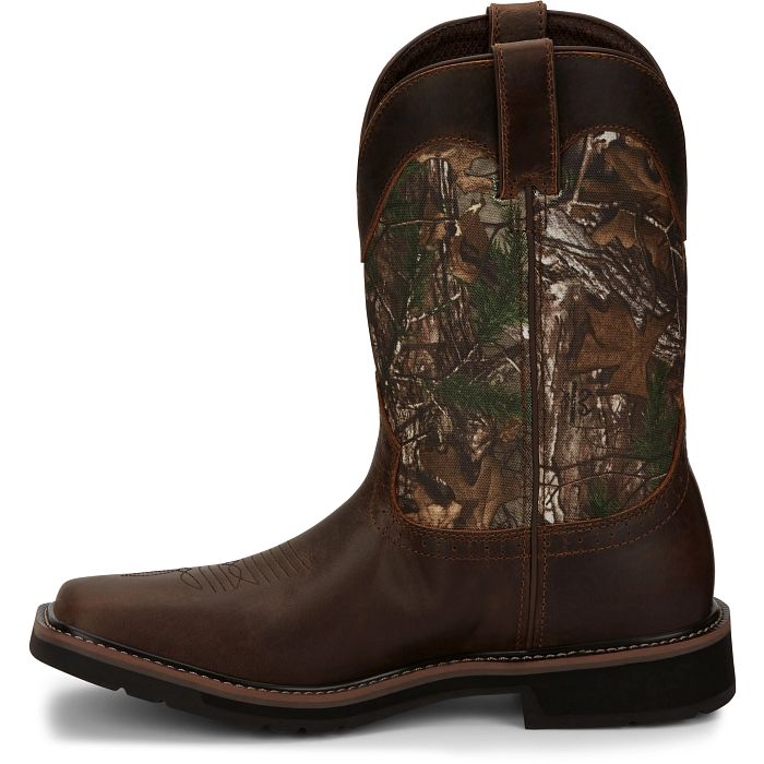 The RealTree®Mini X-tra camo upper is paired with a polished brown leather square toe foot and collar and features a waterproof exterior for added protection when up against the outdoor elements. The J-Flex Flexible Comfort System® insole cushions and supports your foot on or off the trail.