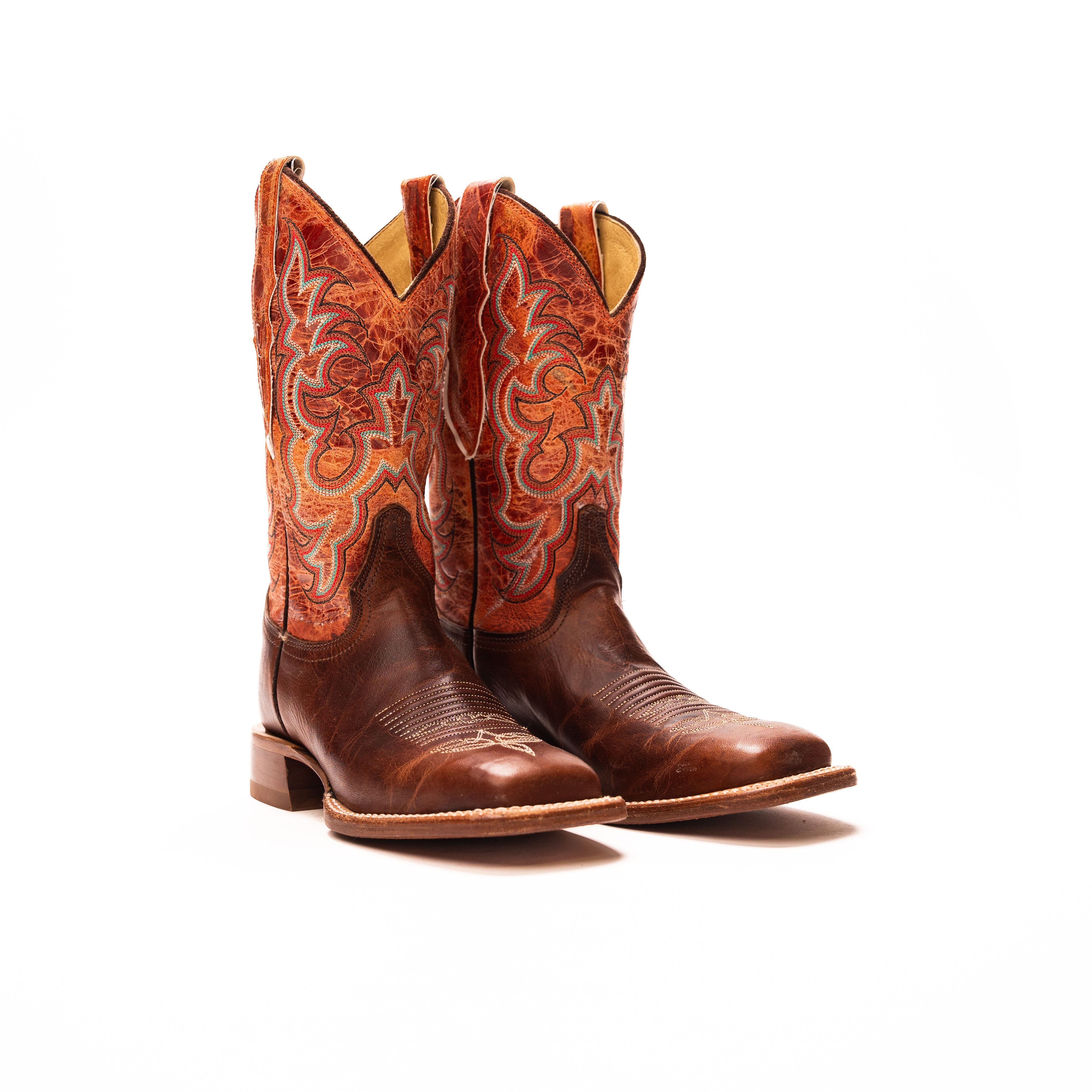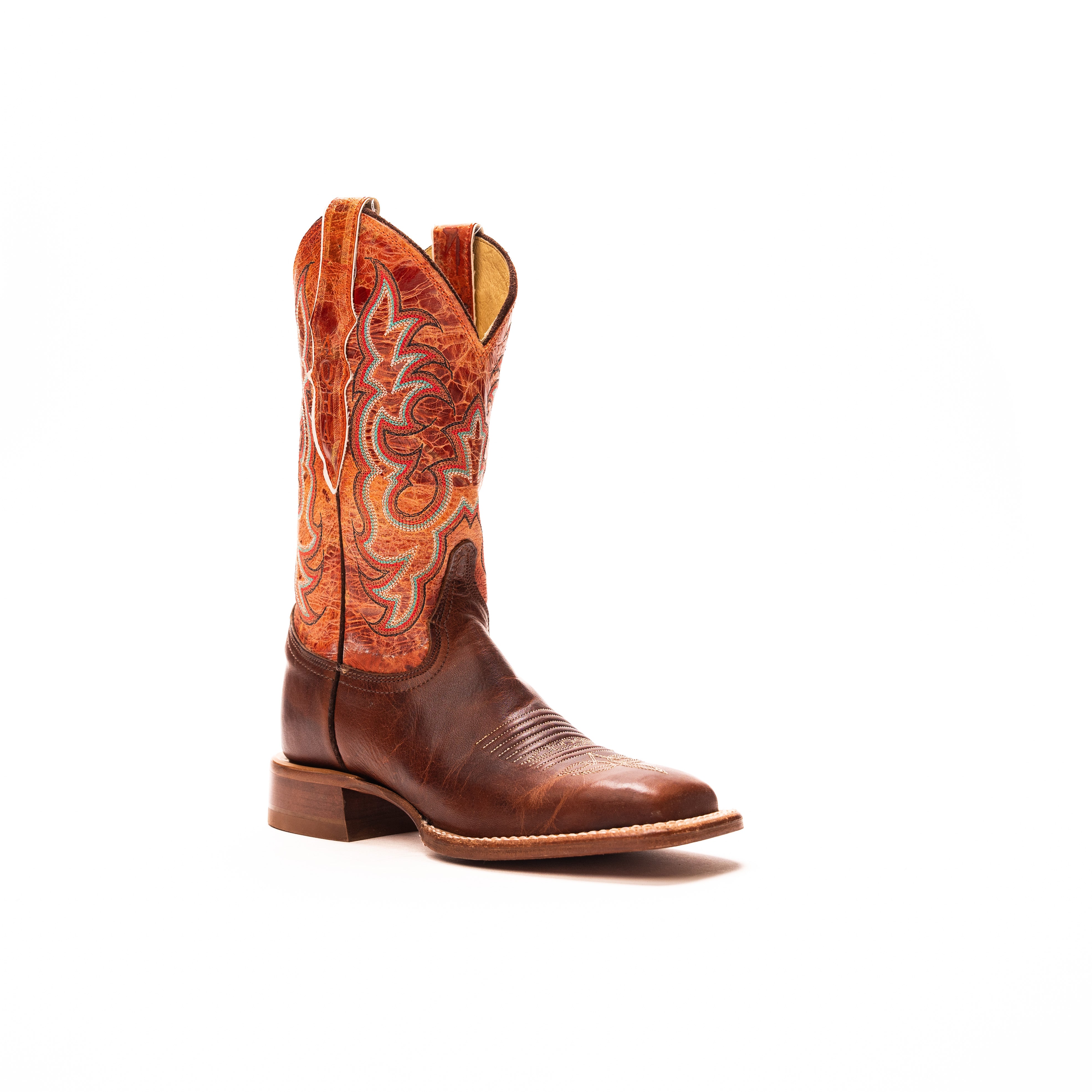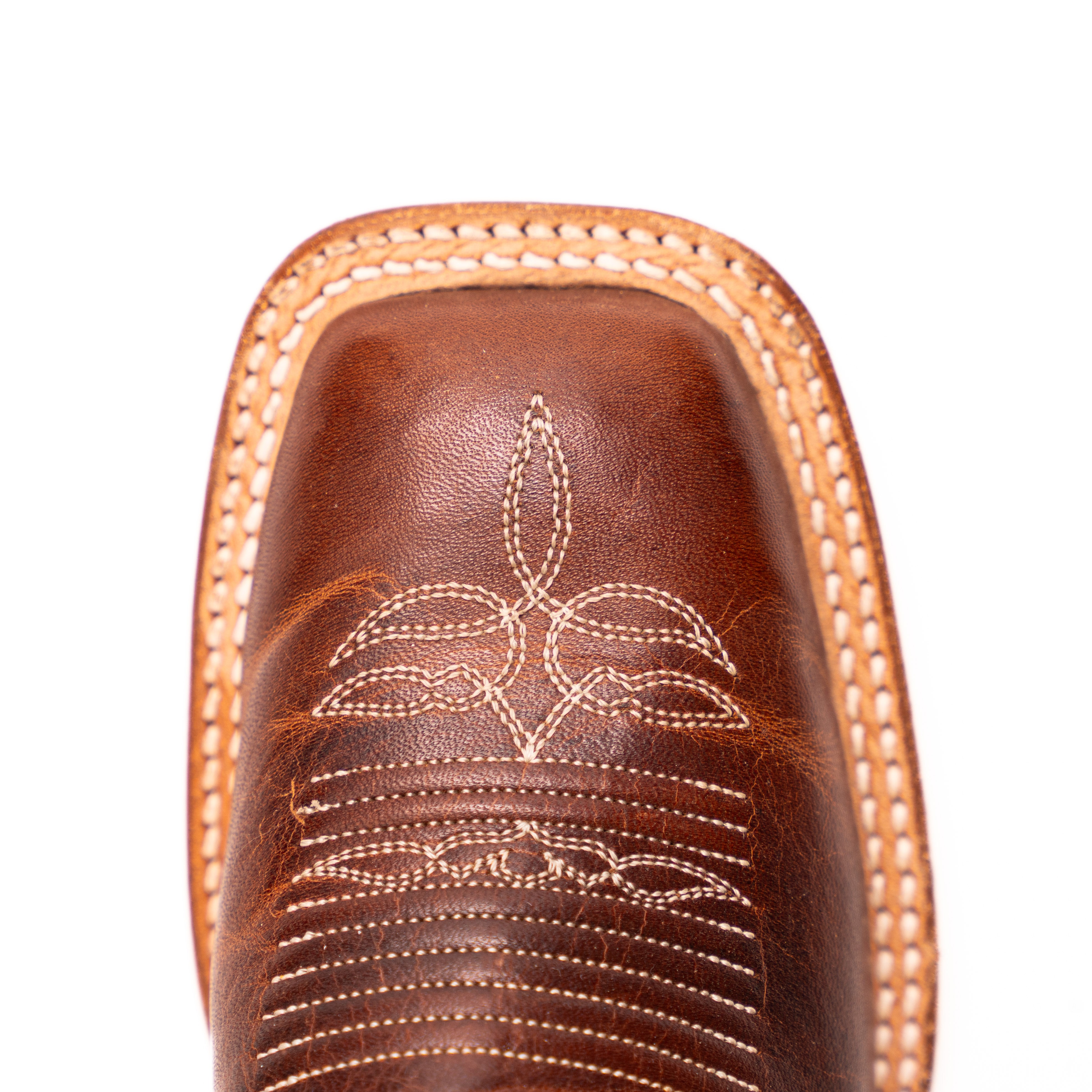 The 11” Dusty cognac stoneage wide square toe boot from our AQHA collection is built for performance and comfort, in and out of the saddle. An amber vamp teams up with a distressed upper for a distinctive, broken-in look. Inside, our J-Flex® insoles keep your feet comfortable throughout the day and the wide square toes provide a roomy fit. The durable butyl oiled leather outsole provides added grip in the stirrups and the block heel and double stitch welt complete this boot’s classic look. As the official boot of the AQHA, a percentage of the sales from the collection goes back to the AQHA Foundation and scholarships. This product is Made in the USA with global parts.