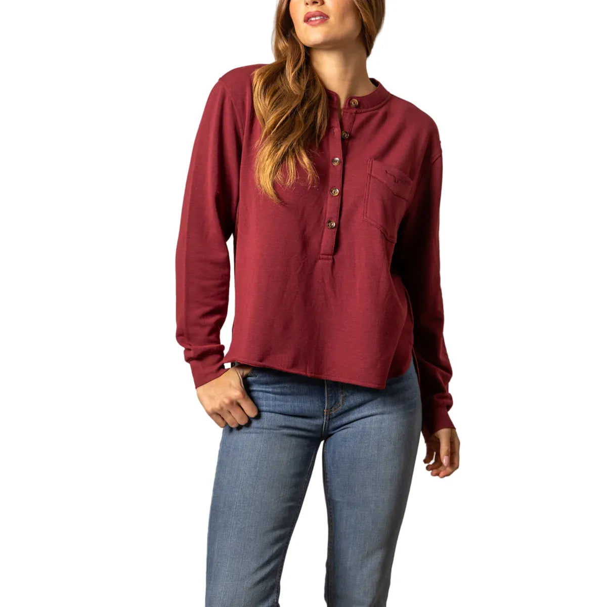 Women's Kimes Ranch Maroon Elouise Henley Long Sleeve Top ELOUISEHENLEY-RD029