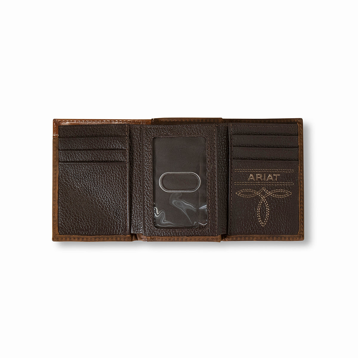 Men's Ariat Brown Trifold Wallet with Basketweave Design A3553502