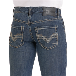 Men's Rock and Roll Denim Ladder Embroidered Pistol Straight Jeans BM1PD07356