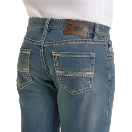 Men's Rock & Roll Denim Ladder Stitch Embroidered Double stack Dark Vintage BMTBD07351
