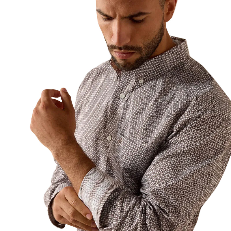 Men's Ariat Chestnut Geo Print Wrinkle Free Alden Classic Fit Shirt 10071750