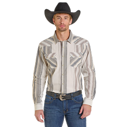 Men's Panhandle Modern Vintage Natural Stripe Long Sleeve Snap Shirt PMN2S06920