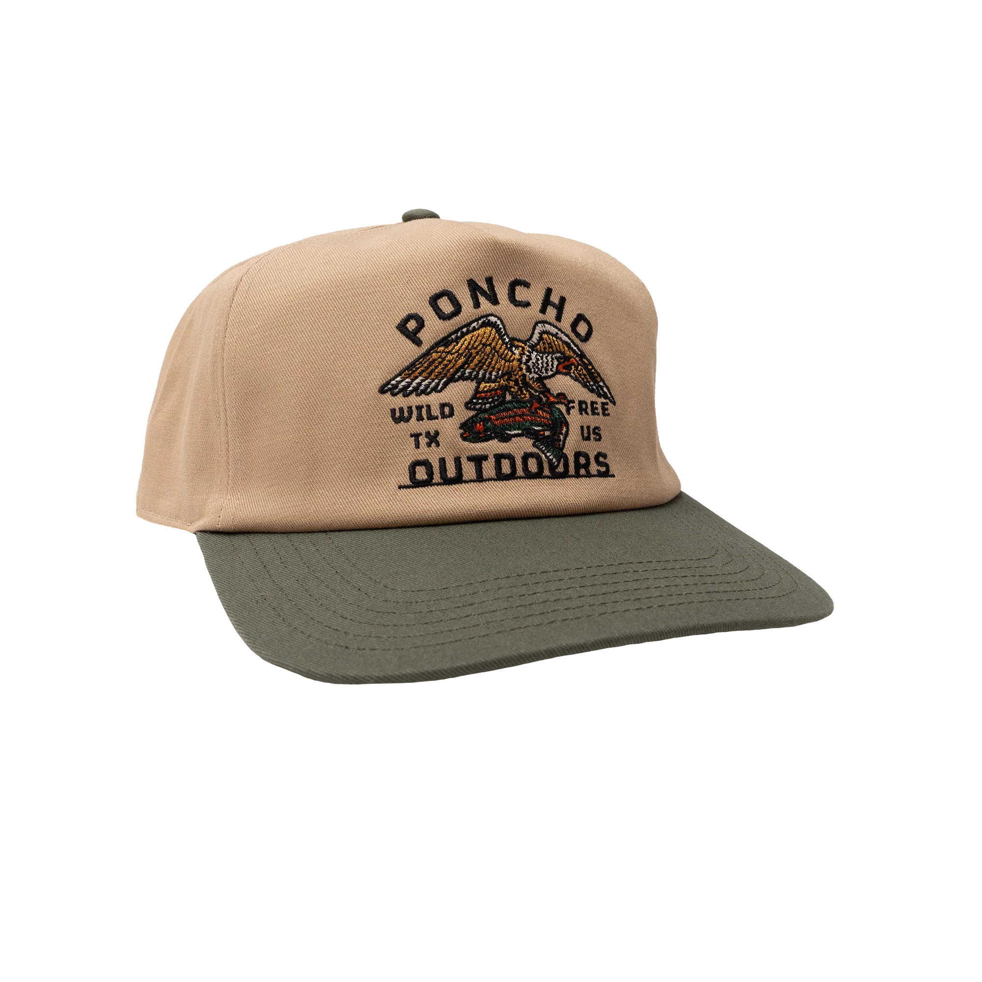 Vintage cotton hat with a snapback closure. Embroidered with the eagle and trout logo.