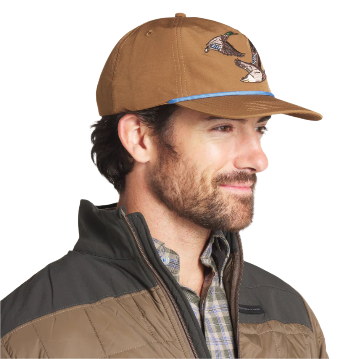 Featuring pair of flying Mallards on front, our Ensenada Rope Hat - Wildlife - Ducks is crafted from 100% ripstop polyester and features an adjustable snap closure for the perfect fit. This hat is lightweight and durable, making it the perfect accessory for all your duck hunting adventures this season.
