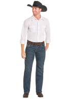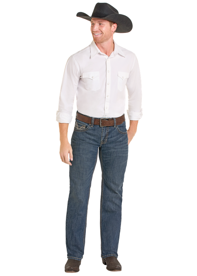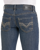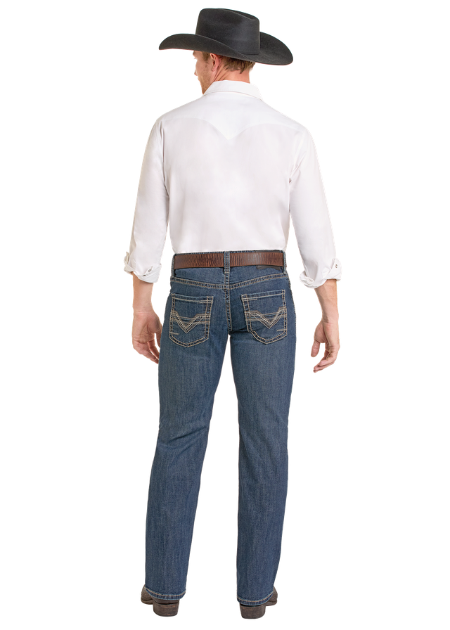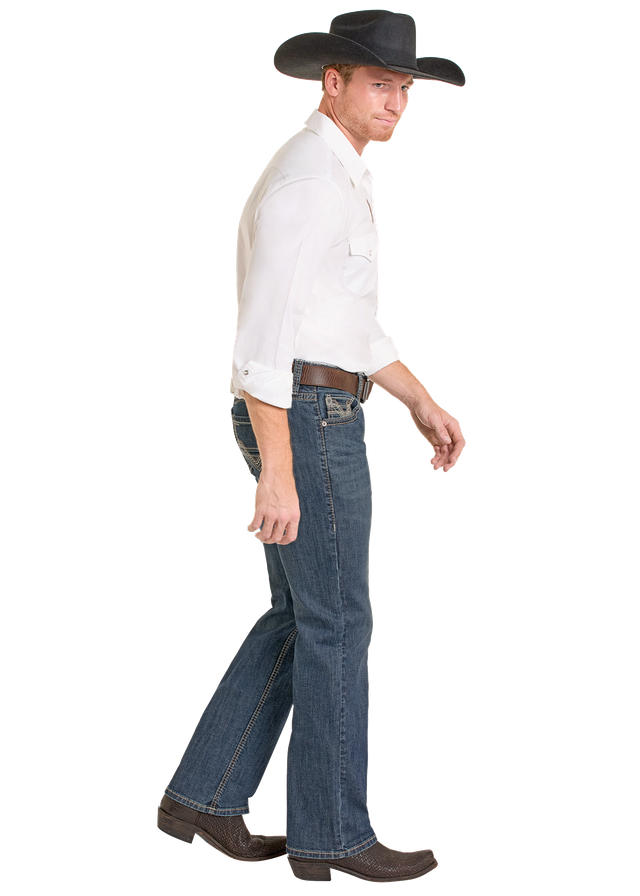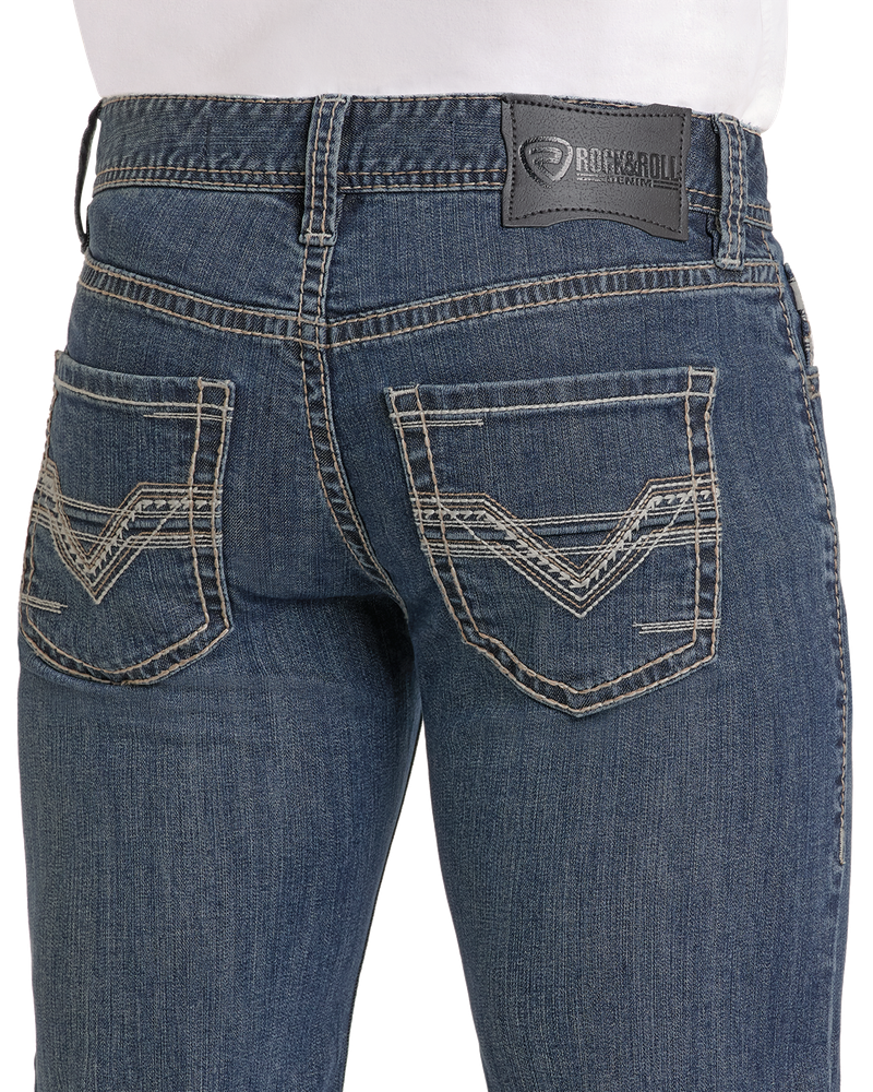 Men's Rock and Roll Denim Ladder Embroidered Pistol Straight Jeans BM1PD07356