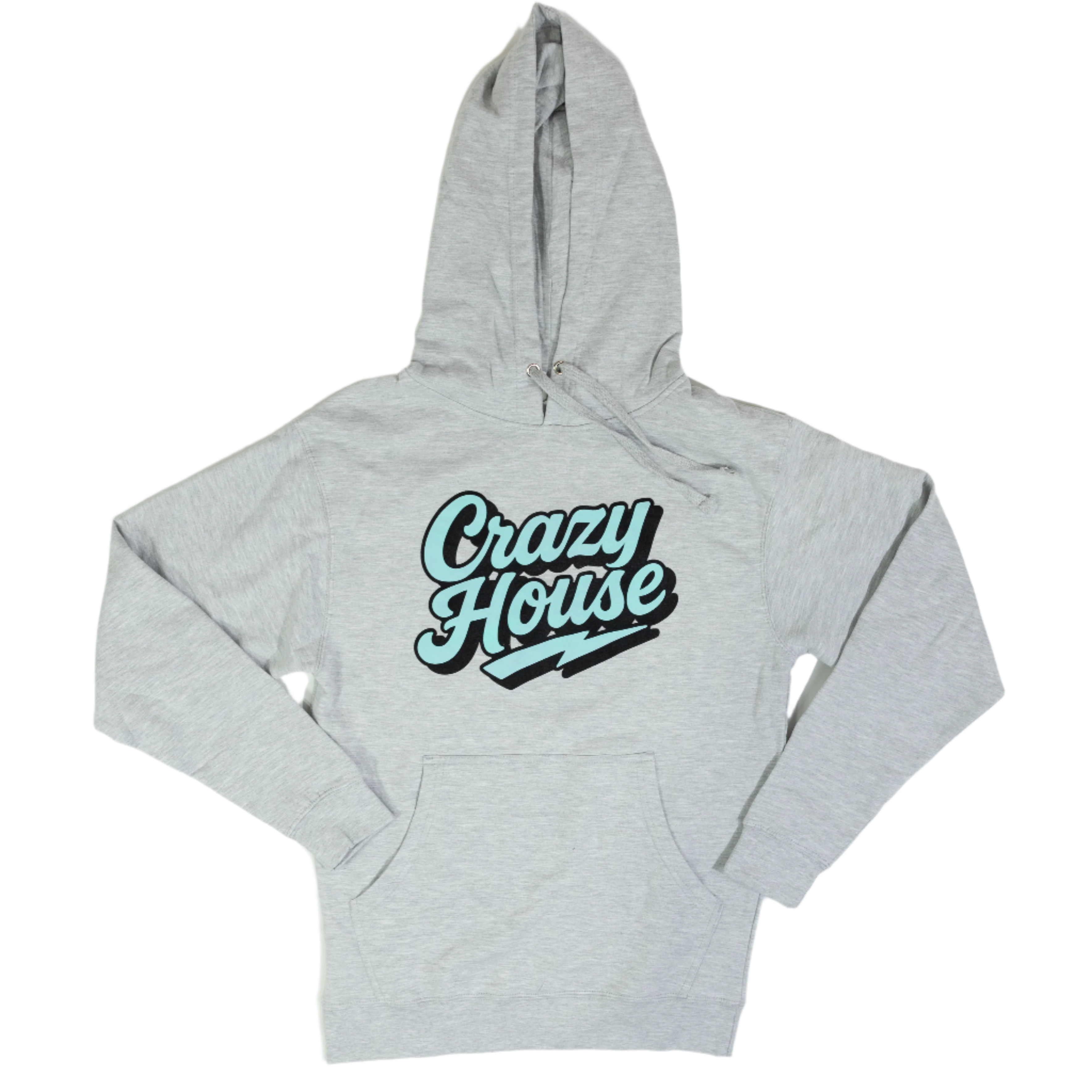 Unisex Crazy House Heather Grey Hoodie with Teal Letters Printed 23676-GRYHTR-HOOD-52061