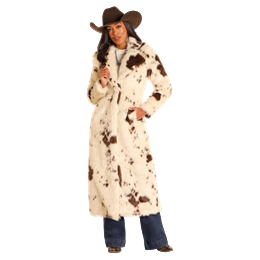 Women's Panhandle Cow Print Long Fur Coat DW92C04155
