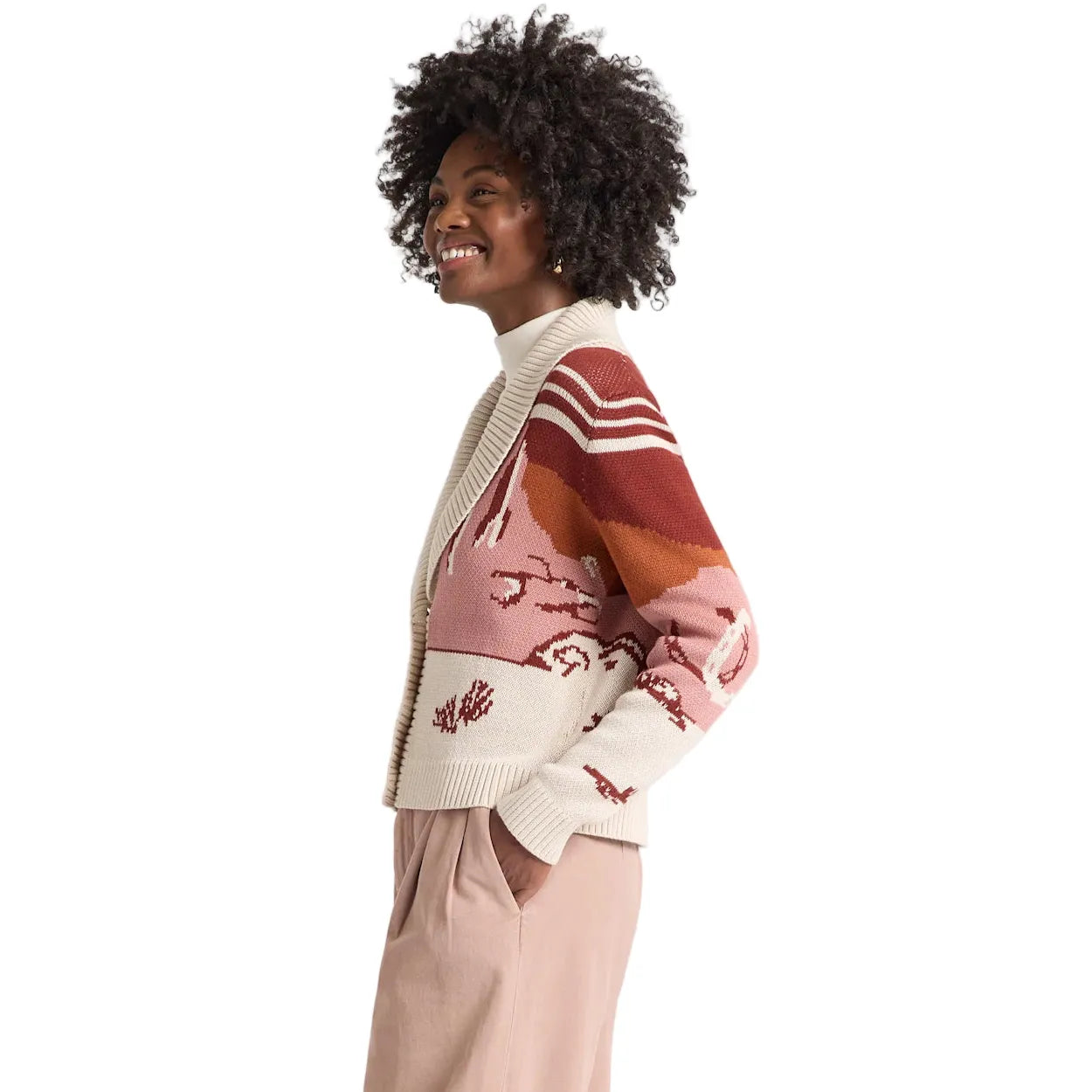 This jacquard cardigan is inspired by sweeping desert landscapes, knit from pure cotton with ribbed trim and a soft hand feel. A statement layer with deep shawl collar and 3-button front closure.