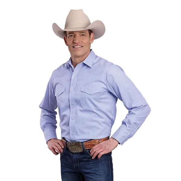 Men's Roper Long Sleeve Blue Striped Button Up Shirt 01-001-0144-0265